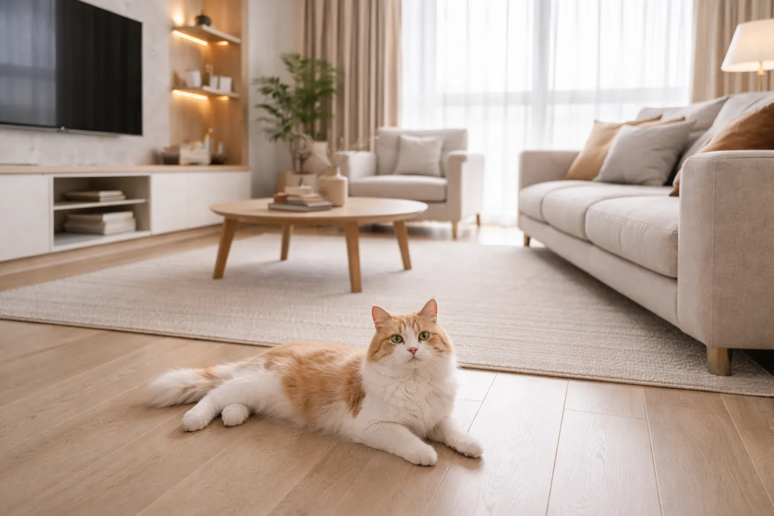 許多屋主會在裝潢完成後才發現,地板容易滑、家具表面容易留下刮痕,或收納空間不足以放置寵物用品,導致後續必須額外鋪設地墊或添購家具補救,不僅影響整體視覺,也增加使用上的不便。