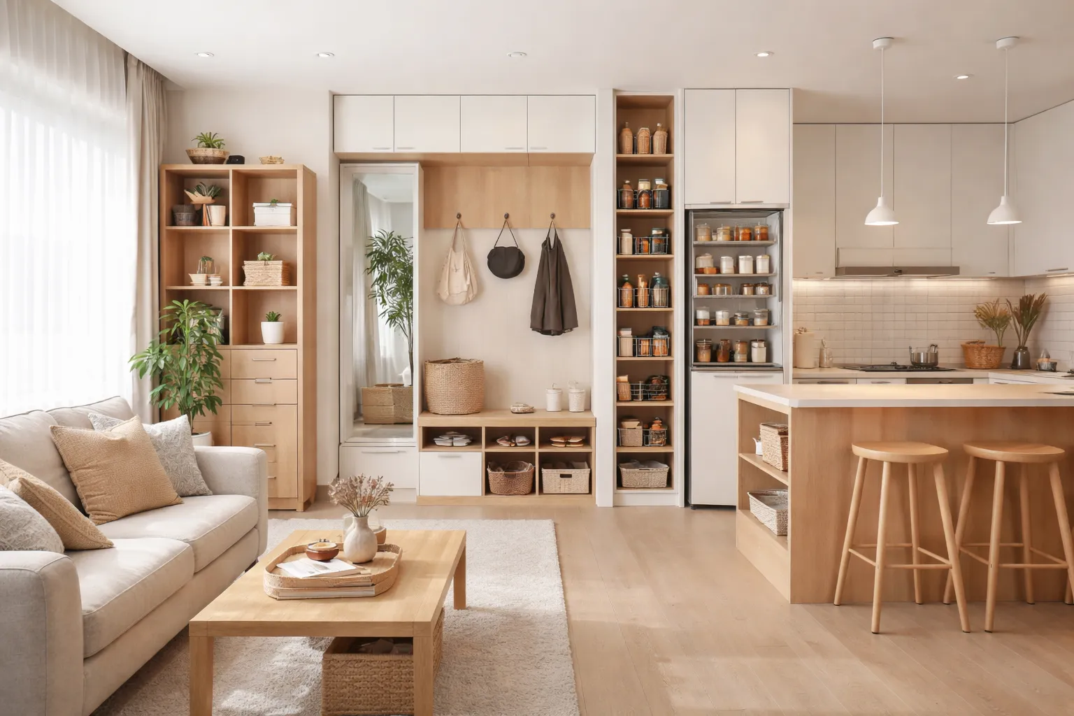 小坪數住宅最怕的不是東西多,而是每樣東西都沒有固定位置。當鞋子、包包、家電、備品、衣物或雜物分散在不同角落時,視覺上就會顯得很滿,生活也會越住越卡。